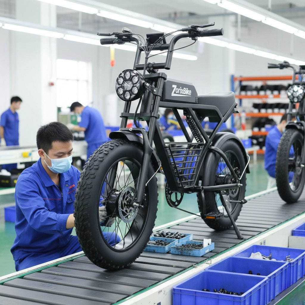 The factory of ZorixBike specializes in electric bike market over 20 years. Has fully production lines, for example: the raw material quality control flow, assembled parts line quality control, battery aging detection, the completed bike riding test and fuction test, package list checking and so on. Ensure each bike in a good condition before loading the container.
